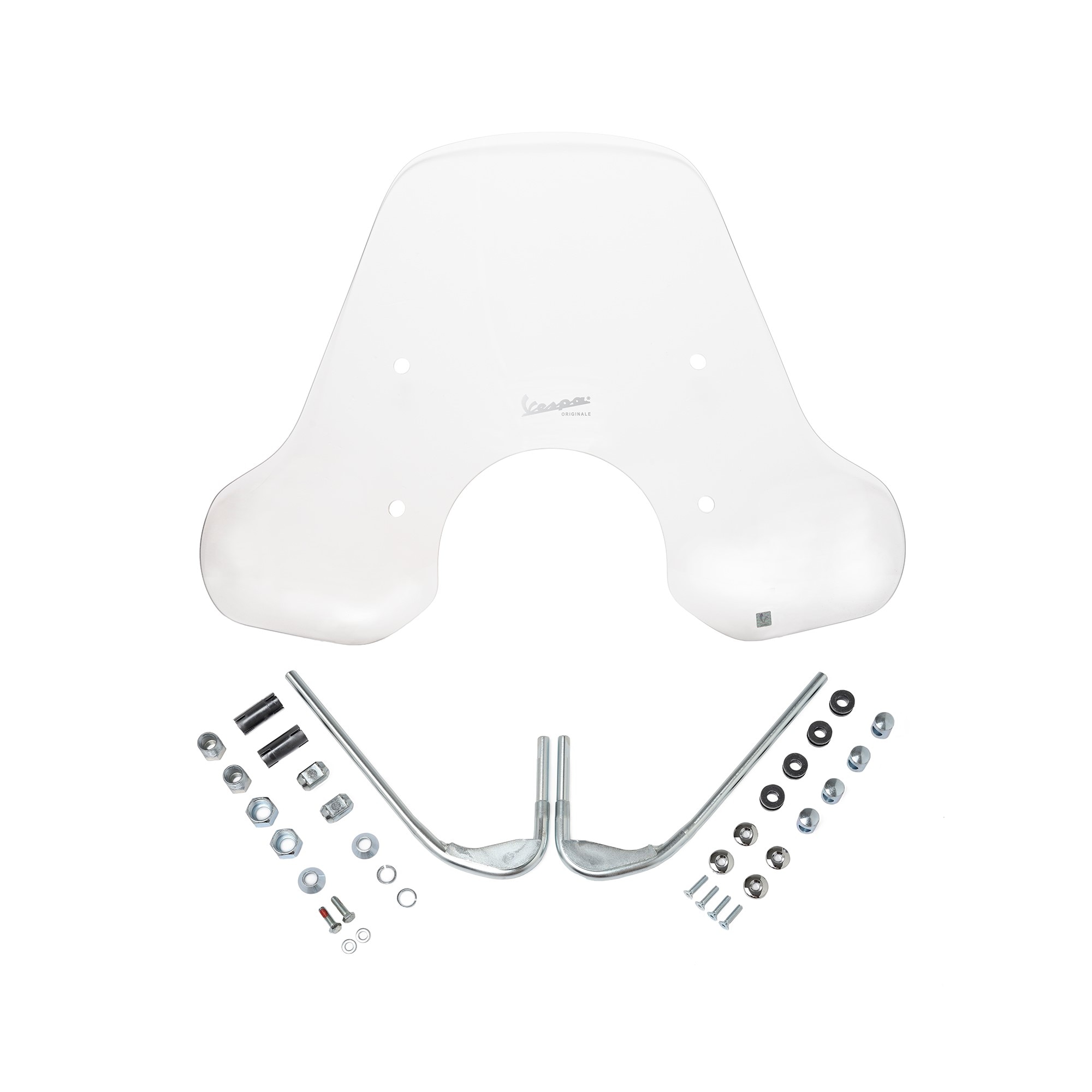 Parabrezza in metacrilato resistente agli urti. Produzione robusta e di alta qualità. Il design delle staffe è abbinato alla Vespa. Protezione garantita dal vento e dalle intemperie.